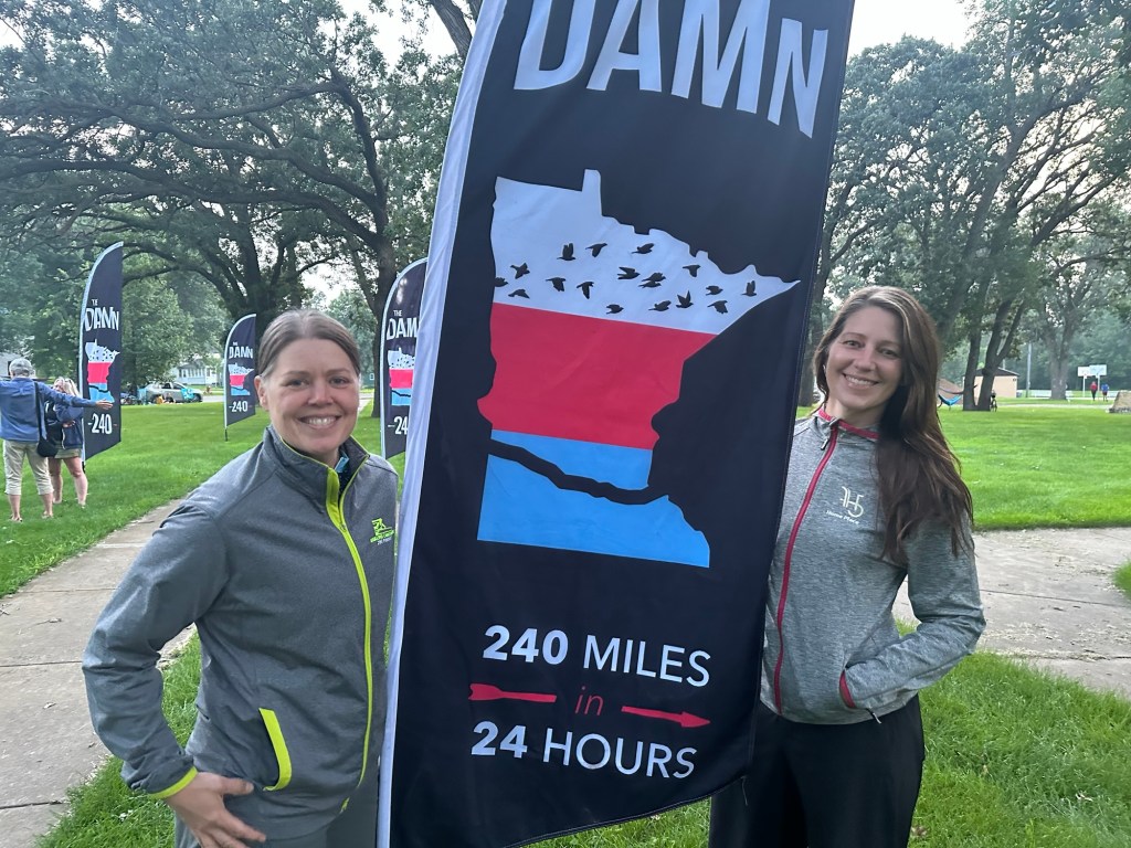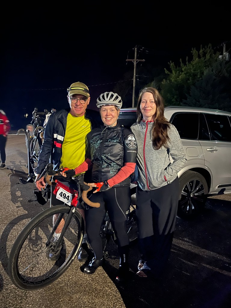 Katie is off on her 34.25 mile leg. All the legs are close to 30 + or – 5 until Matt has to do the last 44 on his own. Katie had a flawless ride and tagged off at 2:22.