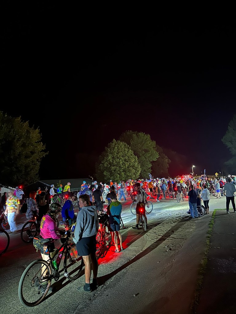 My ride of 28 miles was almost flawless until the last 5 miles when my light quit. Ah, I’ll just ride without it and see how it goes. That lasted 10 feet and then I waited for John from Rochester and asked if I could ride behind him for 5. He said sure, hop on. He saved my ass and probably my face to. When I found the rest of the team I yelled, “John you’re a fucking hero”.